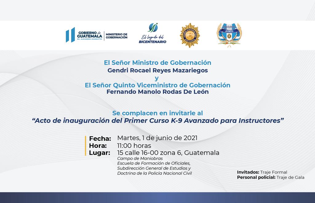 Se complacen en intarle al "Acto de inauguración del Primer Curso K-9 Avanzado para Instructores".