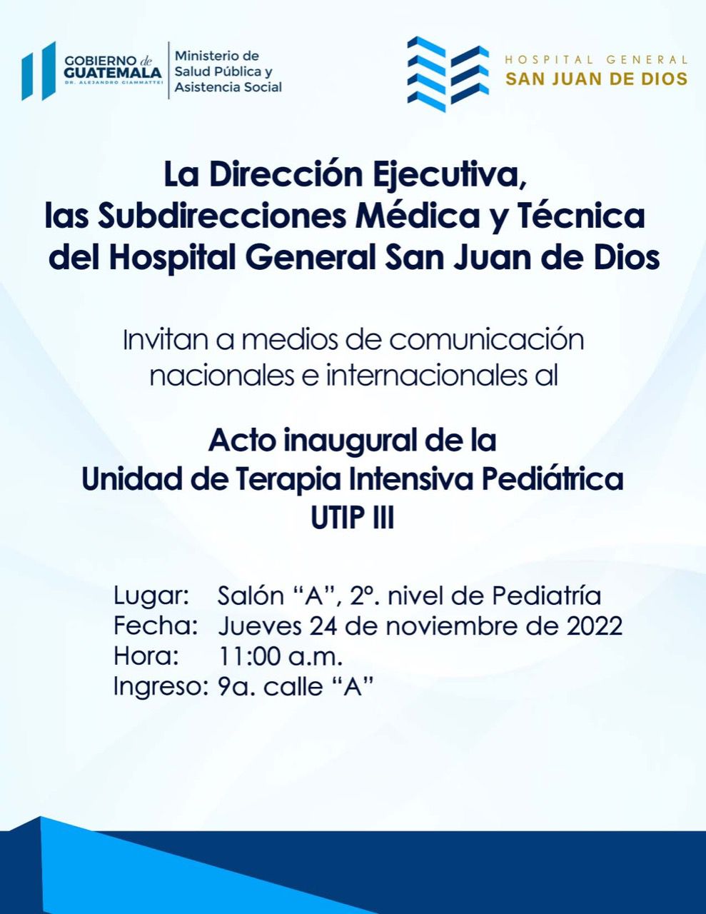 Acto inaugural de la Unidad de Terapia Intensiva Pediátrica UTIP III del Hospital General San Juan de Dios