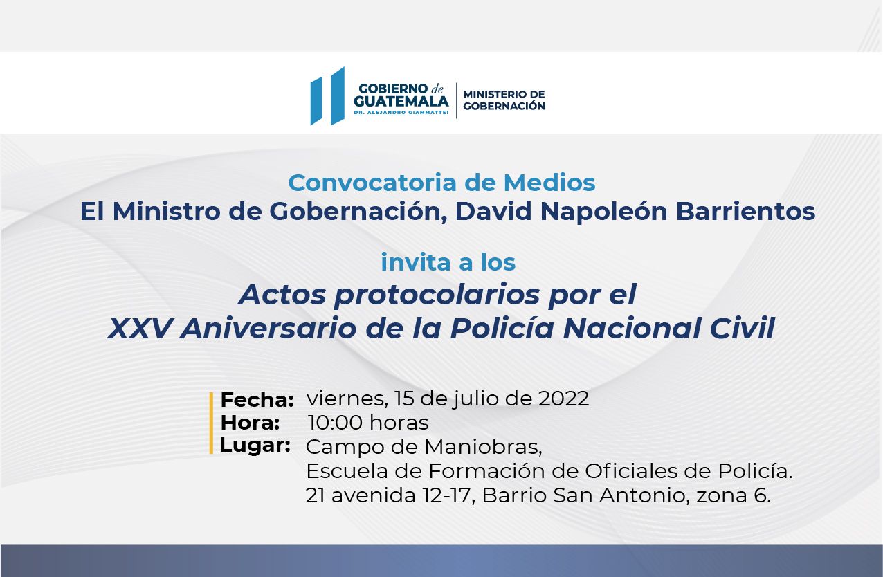 Acto Protocolario en el marco del XXV Aniversario de la Policía Nacional Civil (PNC), en el campo de maniobras de la Escuela de Formación de Oficiales de la Policía Nacional Civil, Barrio San Antonio, zona 6