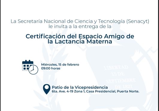 La Senacyt le invita a la entrega de la certificación del Espacio Amigo de la Lactancia Materna.