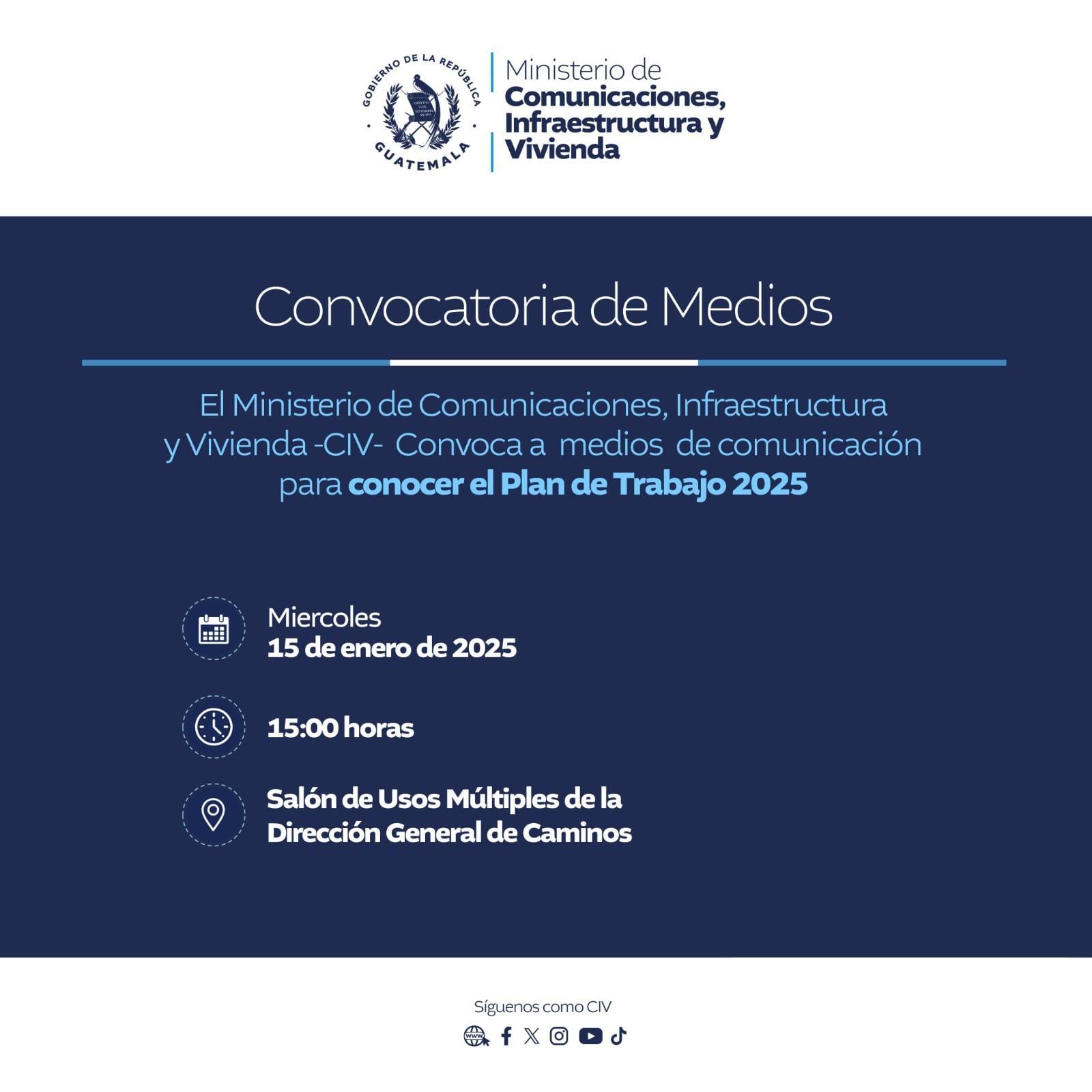 Ministerio de Comunicaciones, Infraestructura y Vivienda (CIV) dará a conocer su Plan de Trabajo 2025