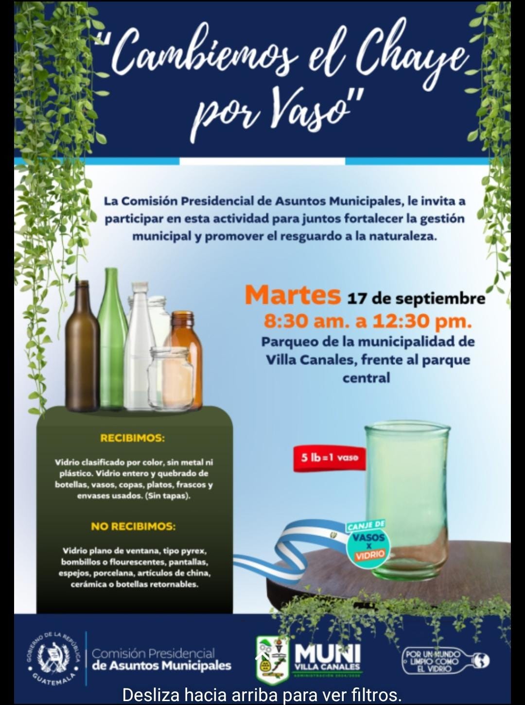 Comisión Presidencial de Asuntos Municipales llevará a cabo el evento “Cambiemos el Chaye por Vaso”