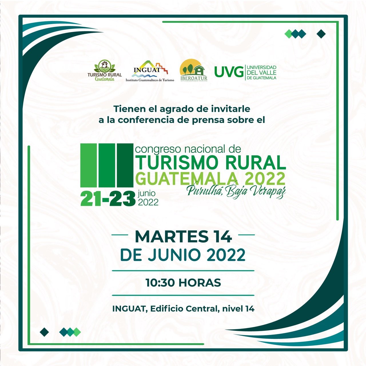 El Instituto Guatemalteco de Turismo (INGUAT) lo invita a la conferencia de prensa sobre el "Congreso Nacional de Turismo Rural, Guatemala 2022"