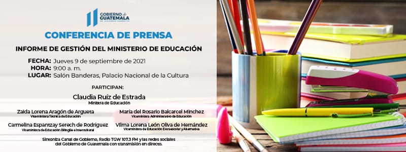 Participarán la ministra de Educación, Claudia Ruiz de Estrada; viceministra Técnica de Educación, Zaida Lorena Aragón de Argueta; viceministra Administrativa de Educación, María del Rosario Balcarcel Minchez; viceministra de Educación Bilingüe e Intercultural, Carmelina Espantzay Serech de Rodríguez; y viceministra de Educación Extraescolar y Alternativa, Vilma Lorena de León Oliva.
