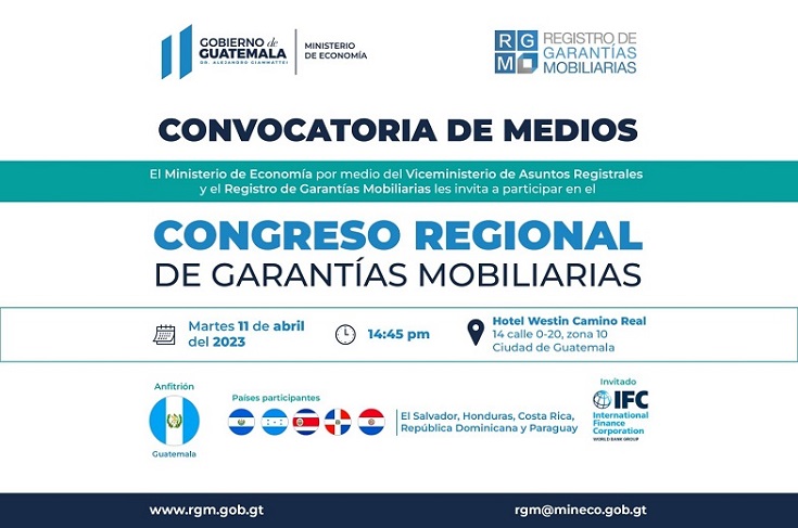 El Congreso Regional de Garantías Mobiliarias reunirá a socios estratégicos, nacionales e internacionales con el objetivo de fortalecer las instituciones que tienen que ver con el tema en Guatemala, El Salvador, Honduras, Costa Rica, República Dominicana y Paraguay.
