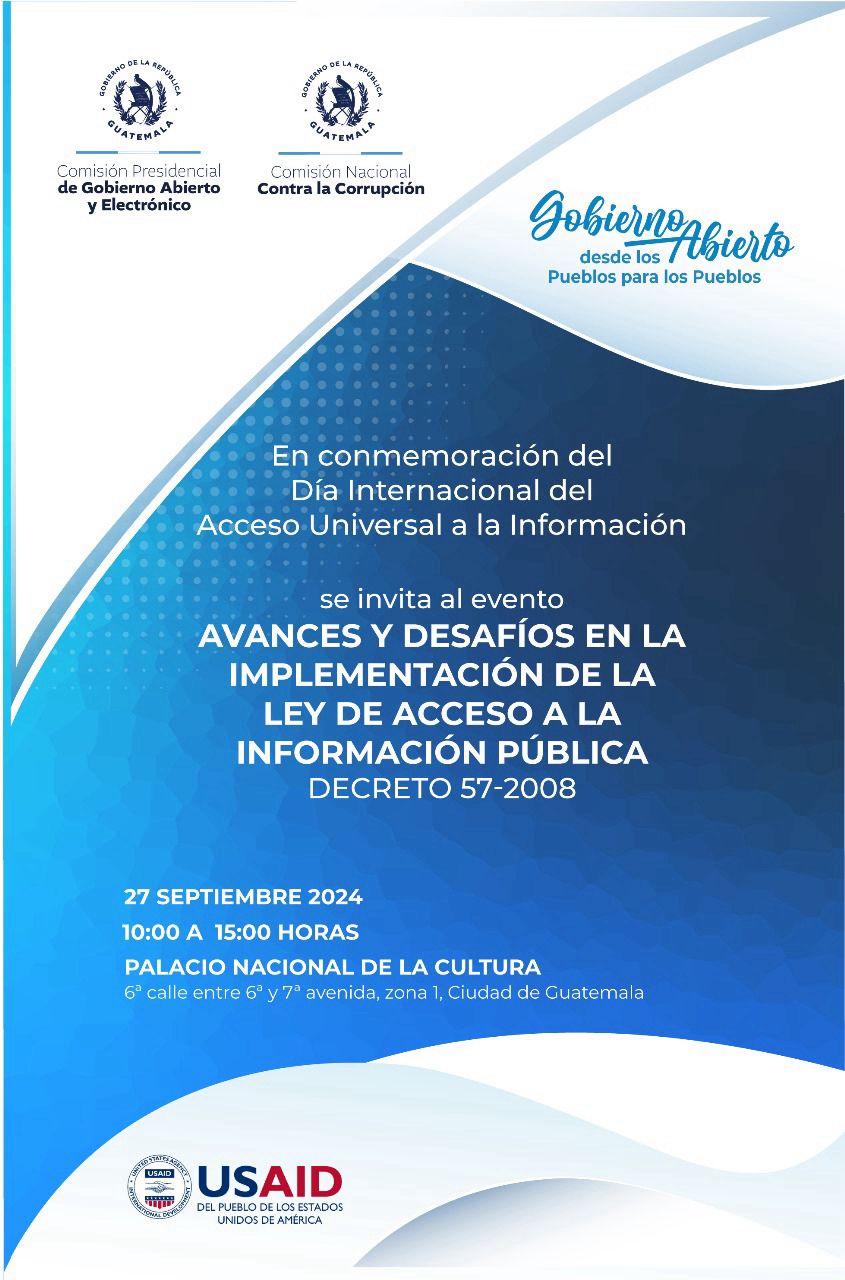En conmemoración del Día Internacional del Acceso Universal a la Información, se invita al evento Avances y Desafíos en la Implementación de la Ley de Acceso a la Información Pública.
