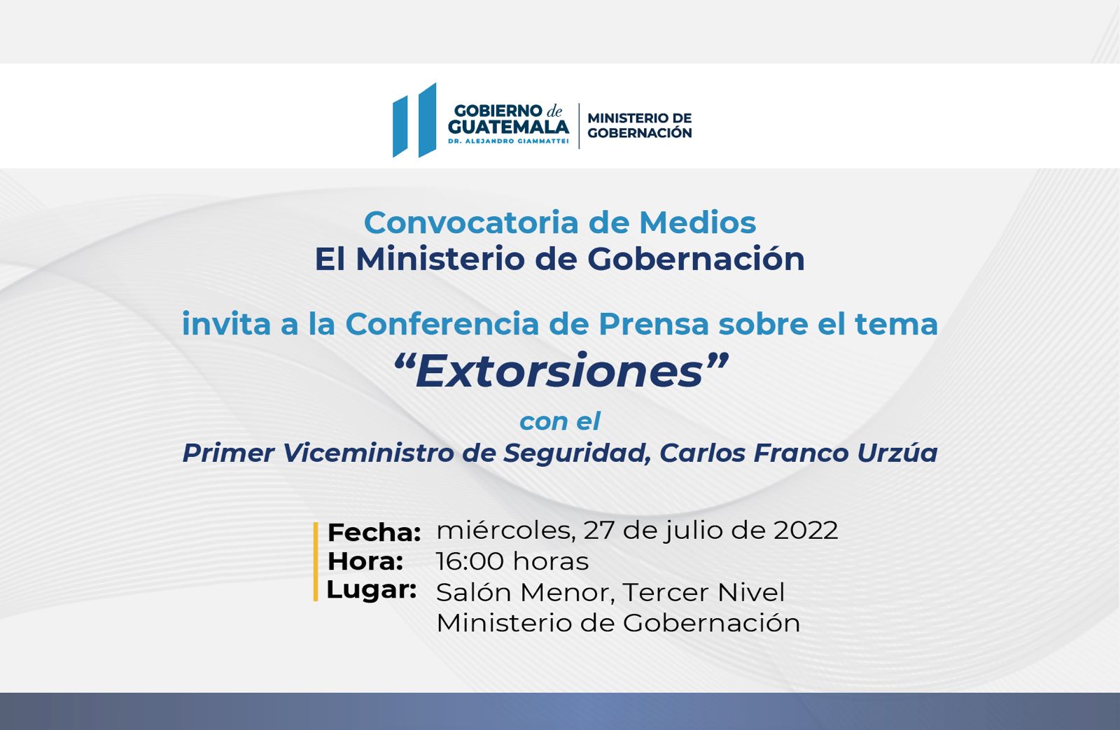 Salón menor, Tercer Nivel Ministerio de Gobernación 6a Avenida 13-71 zona 1 Guatemala Guatemala