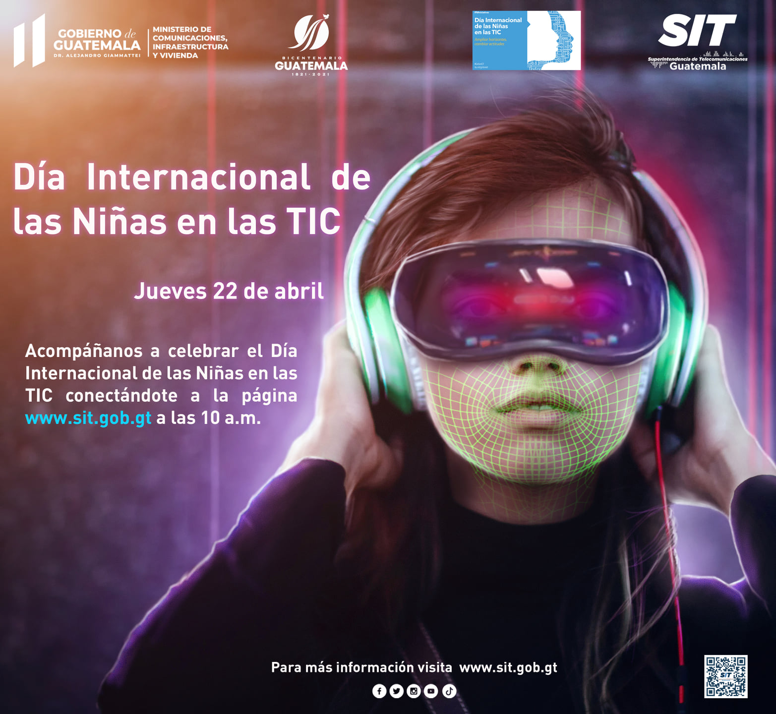 Este día se contó con la participación de niñas de diferentes centros educativos a nivel nacional, de los sectores públicos y privados, que fueron convocados por el Ministerio de Educación y el Consejo Nacional de la Juventud, Empresarios por la Educación y la Asociación de Colegios Privados de Guatemala, a que se conectaran al evento virtual que fue preparado especialmente para niñas y mujeres jóvenes. Dicha actividad fue trasmitida utilizando el sitio web de la SIT como portal de acceso