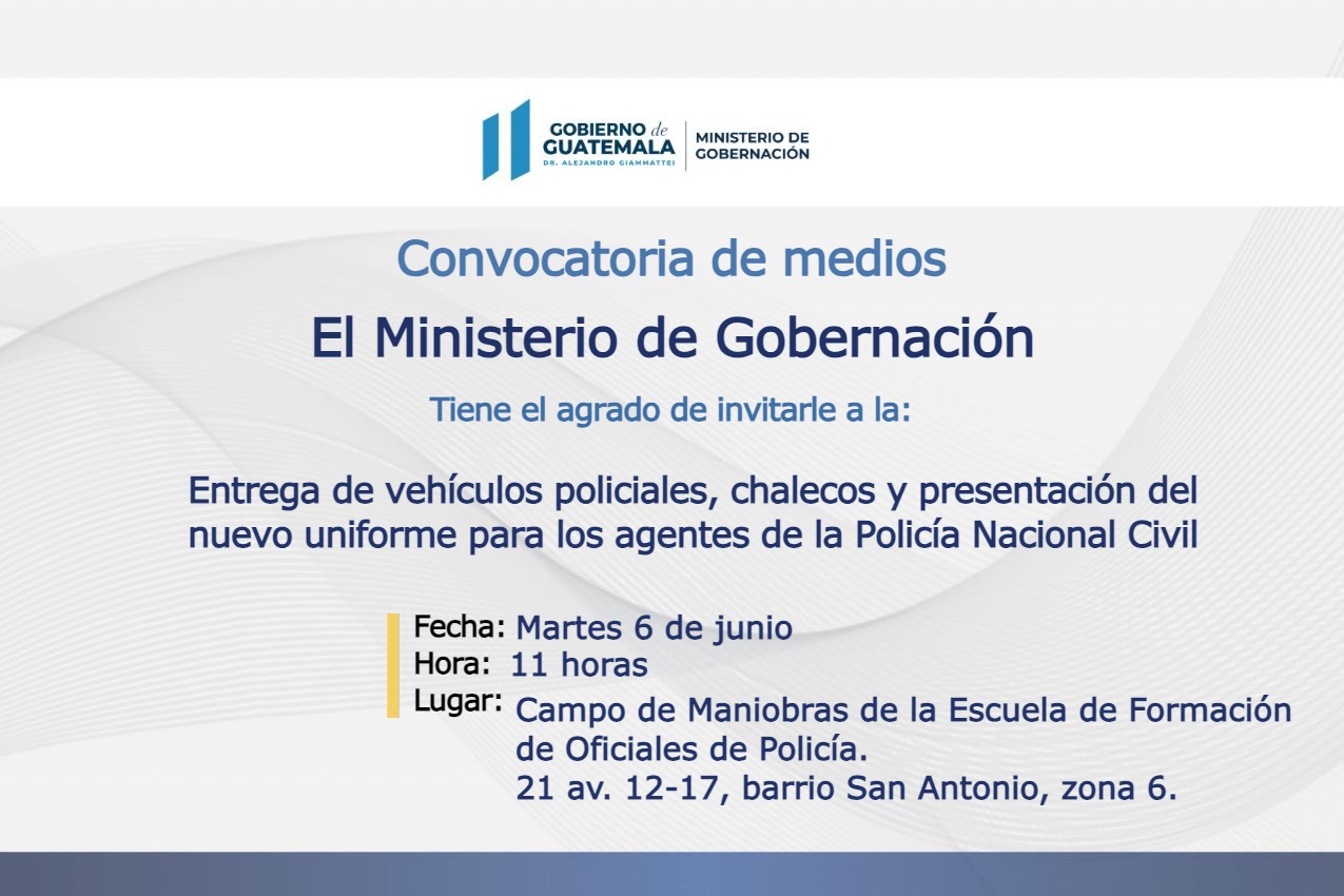 Evento: Entrega de vehículos policiales, chalecos y presentación del nuevo uniforme para los agentes de la Policía Nacional Civil