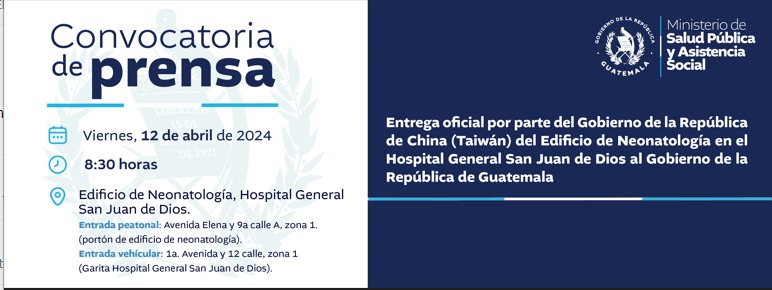 Entrega oficial por parte del Gobierno de la República de China (Taiwán) del edificio de Neonatología en el Hospital General San Juan de Dios al Gobierno de la República de Guatemala
