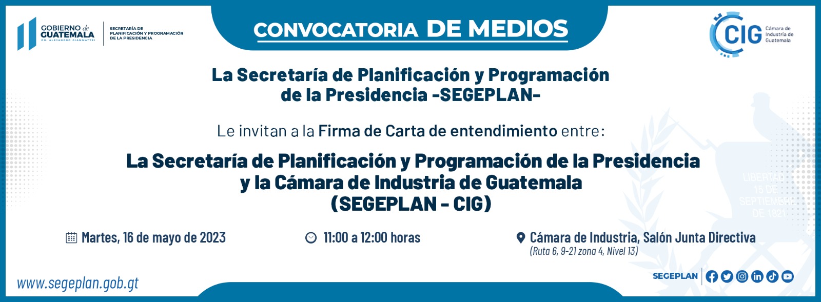 Firma de carta entendimiento entre SEGEPLAN y Cámara de Industria de Guatemala-CIG