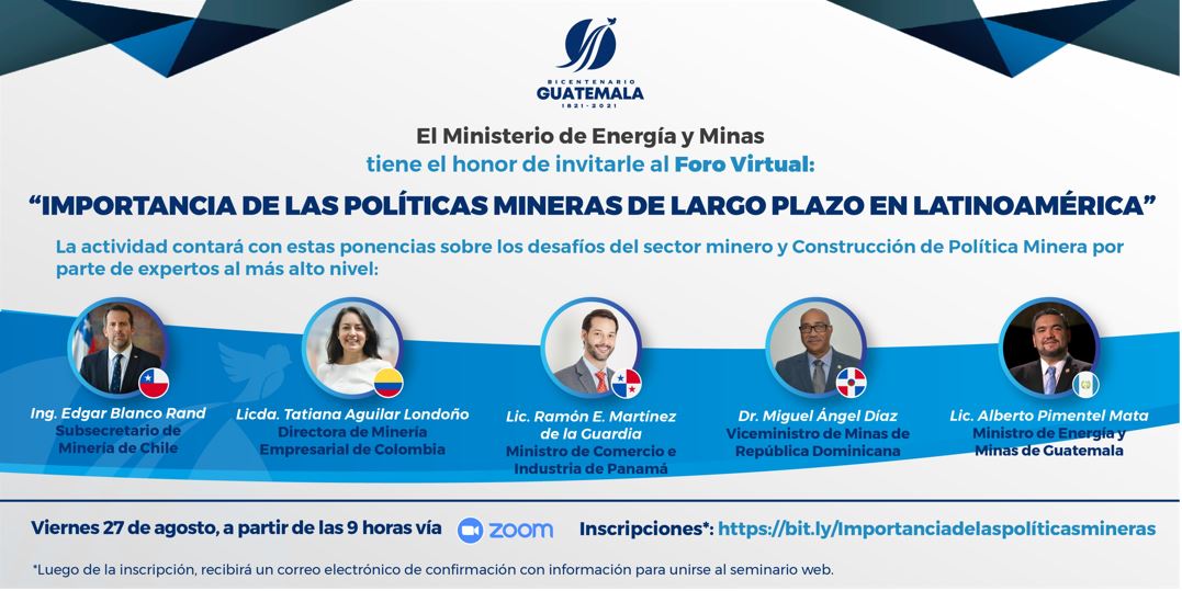 El Ministerio de Energía y Minas le invita a participar en el foro virtual: Importancia de las políticas mineras de largo plazo en Latinoamérica.