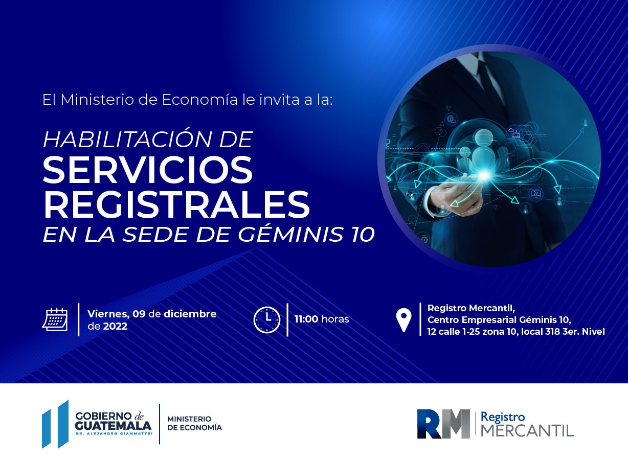 Lugar: Sede Registro Mercantil Centro Empresarial Géminis 10, 12 calle 1-25 zona 10, local 318, 3er. nivel.