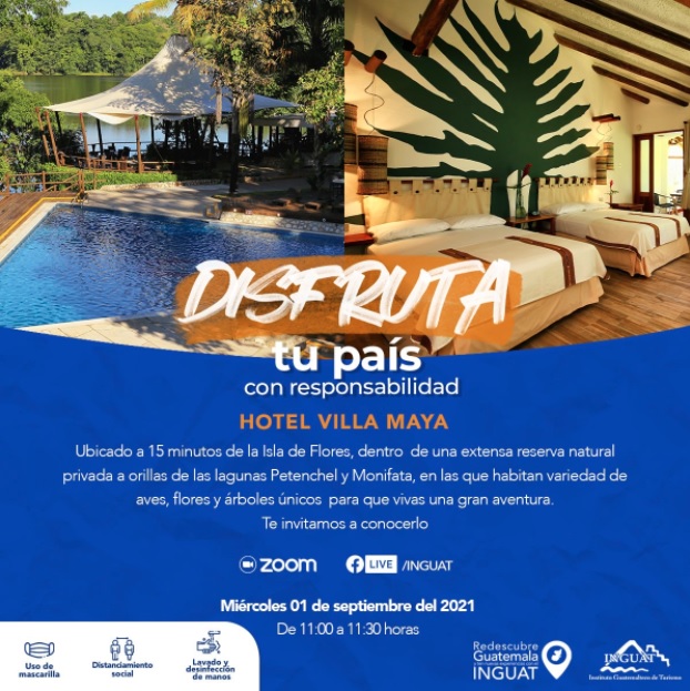 Te invitamos a nuestro recorrido virtual, Hotel Villa Maya un increíble lugar cercano al Parque Nacional Tikal, en donde podrás disfrutar de una extensa reserva natural privada, a orillas de las lagunas Petenchel y Monifata.