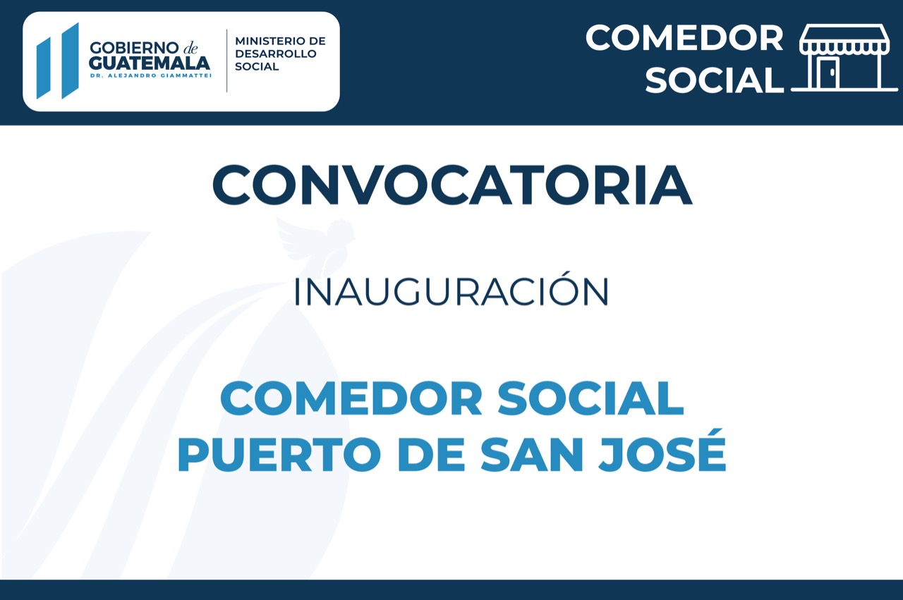 El Ministro de Desarrollo Social, Raul Romero Segura, tiene el gusto de invitarle a la inauguración del nuevo Comedor Social en el Puerto de San José, Escuintla.