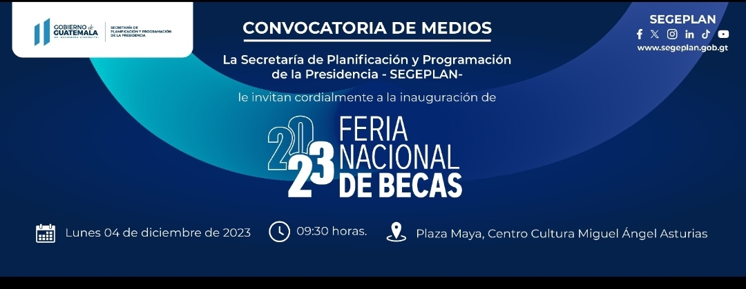 Inauguración Feria Nacional de Becas 2023 Lunes 04 de diciembre de 2023/ 09:30 horas Plaza Maya, Centro Cultura Miguel Ángel Asturias.