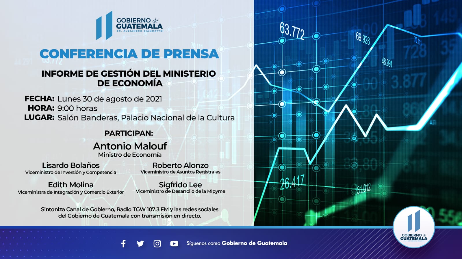 El Gobierno de Guatemala convoca a la conferencia de prensa: Informe de Gestión del Ministerio de Economía.