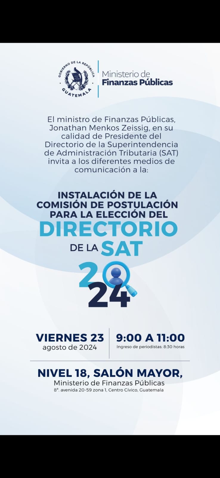 Salón Mayor, Nivel 18 del Ministerio de Finanzas Públicas 8 avenida 20-59 zona 1 Ciudad capital de Guatemala Guatemala Guatemala