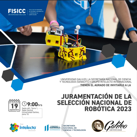 La Universidad Galileo, Grupo Intelecto y la Senacyt tienen el agrado de invitarlo a la Juramentación de la Selección Nacional de Robótica 2023.