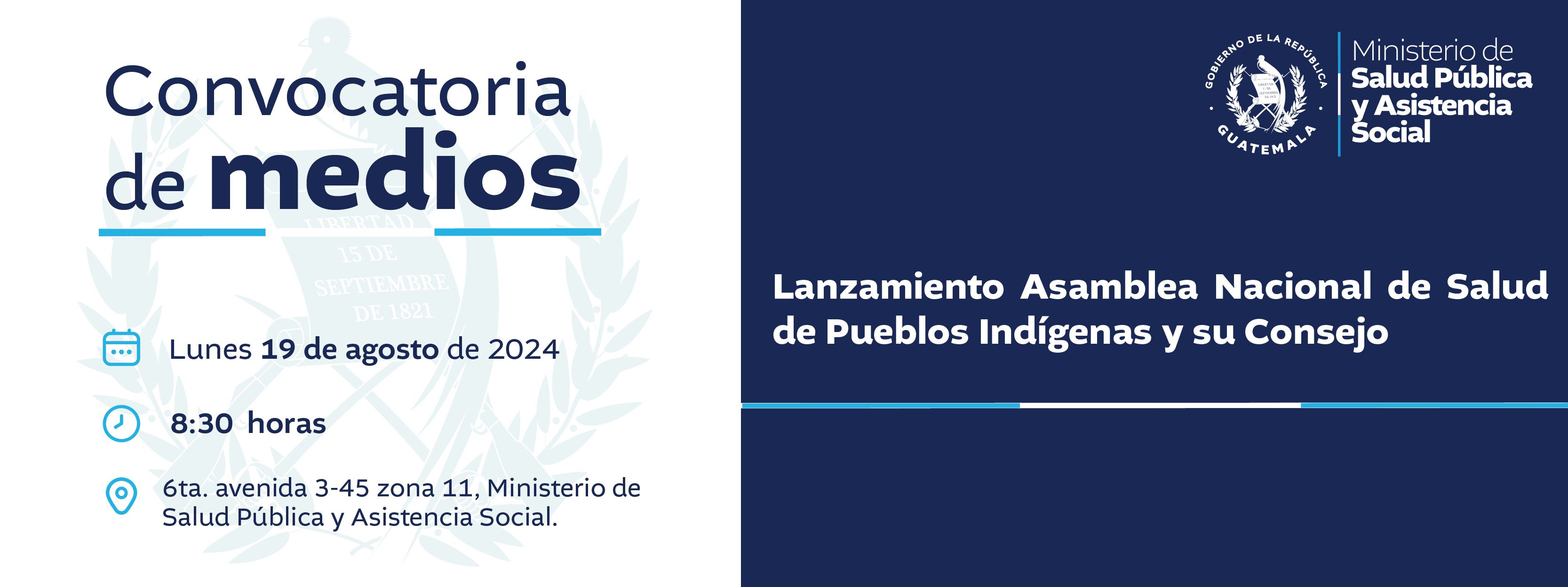 El Ministerio de salud pública y asistencia social tiene el agrado de invitarle al Lanzamiento Asamblea Nacional de Salud de Pueblos Indígenas y su Consejo
