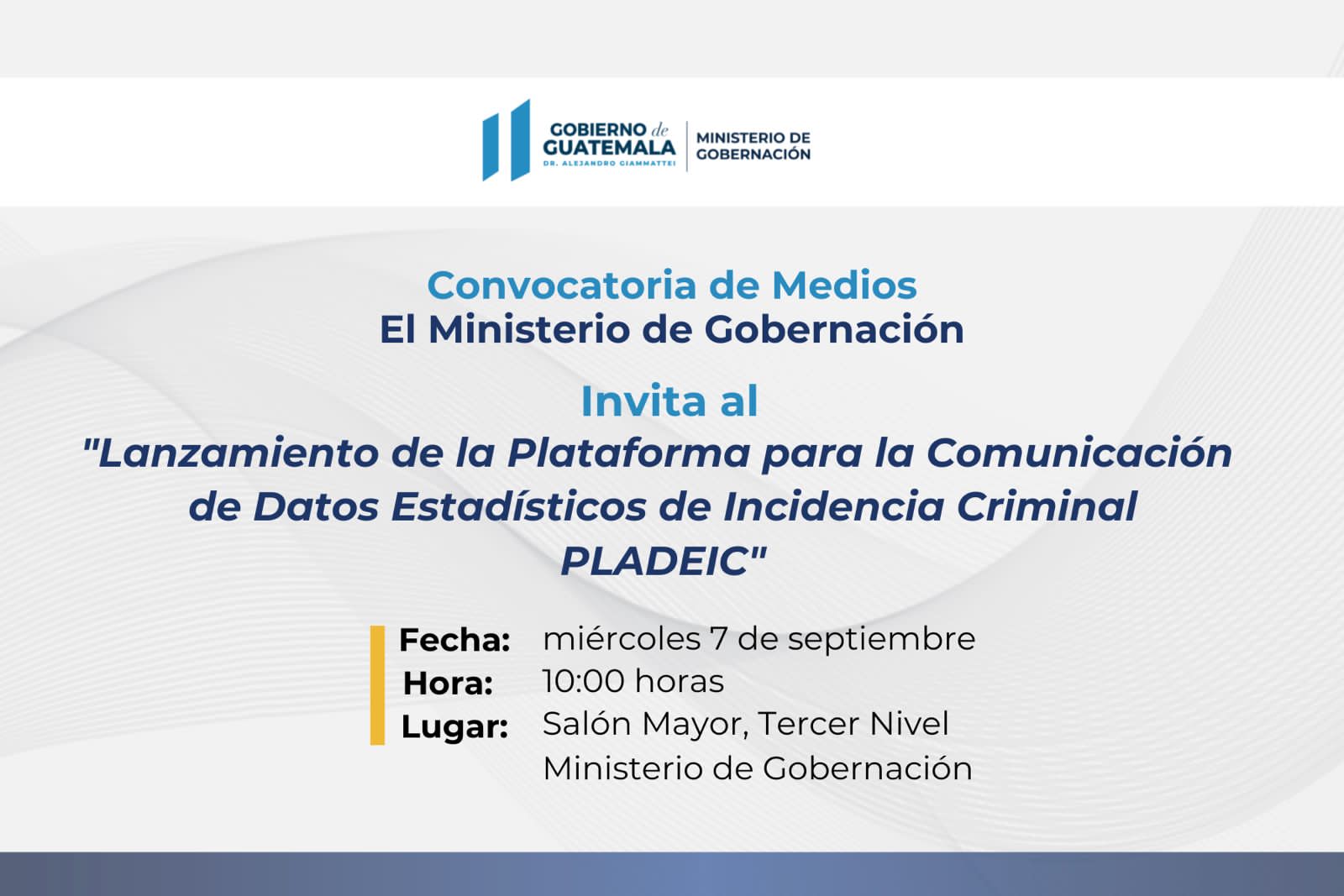 Convocatoria a medios de comunicación a la conferencia de prensa sobre el lanzamiento de la Plataforma para la comunicación de datos Estadísticos de la Incidencia Criminal (PLADEIC)