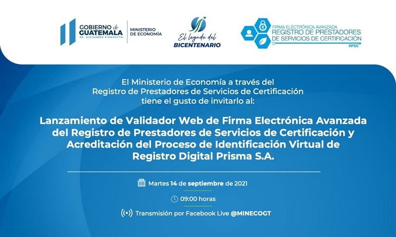 El Ministerio de Economía, por medio del Registro de Prestadores de Servicios de Certificación, presenta el Validador WEB de la Firma Electrónica Avanzada, aplicación que beneficiará a los usuarios de esta herramienta y permitirá acelerar aun más los procesos relacionados dicha firma.