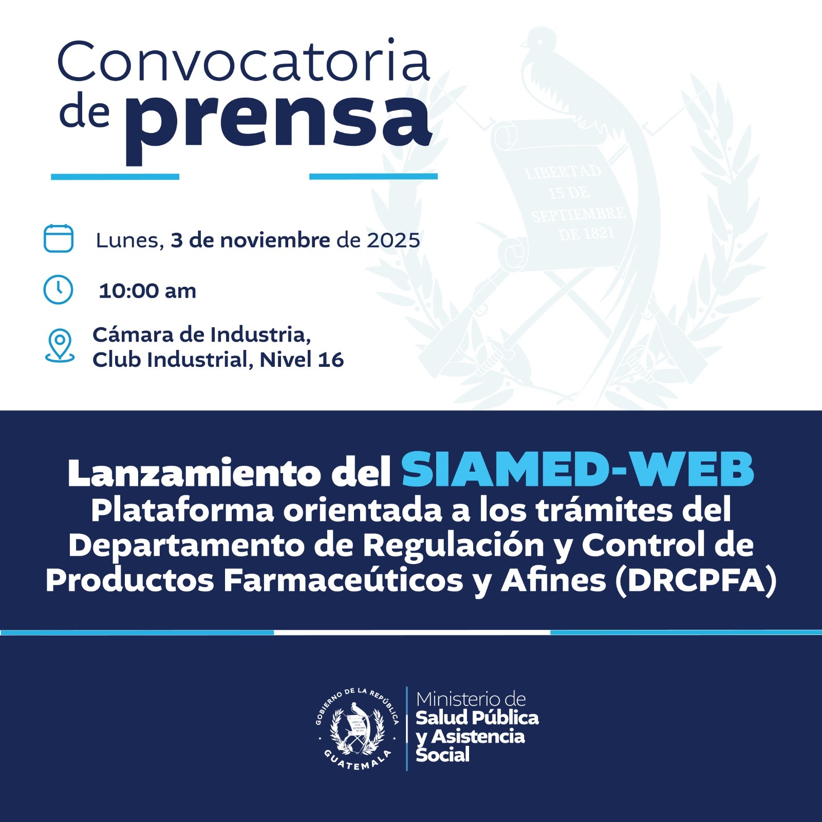 Lanzamiento del SIAMED-WEB plataforma orientada a los trámites del Departamento de Regulación y Control de Productos Farmacéuticos y Afines (DRCPFA)