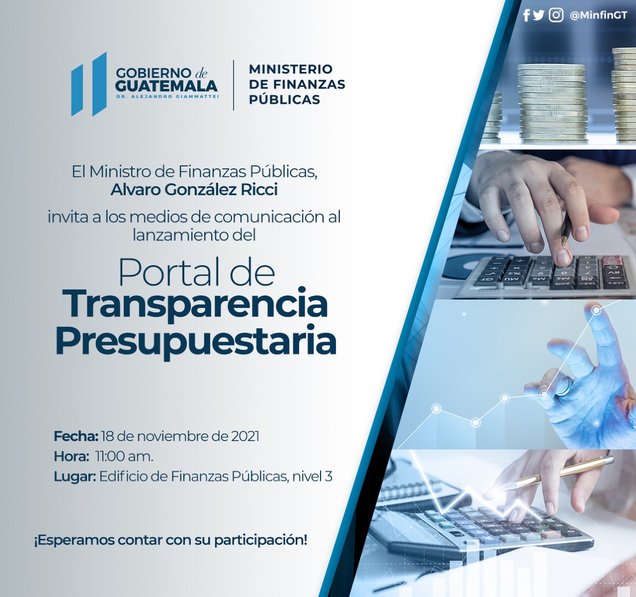El Ministro de Finanzas Públicas, Alvaro González Ricci invita a los medios de comunicación al lanzamiento del Portal de Transparencia Presupuestaria.