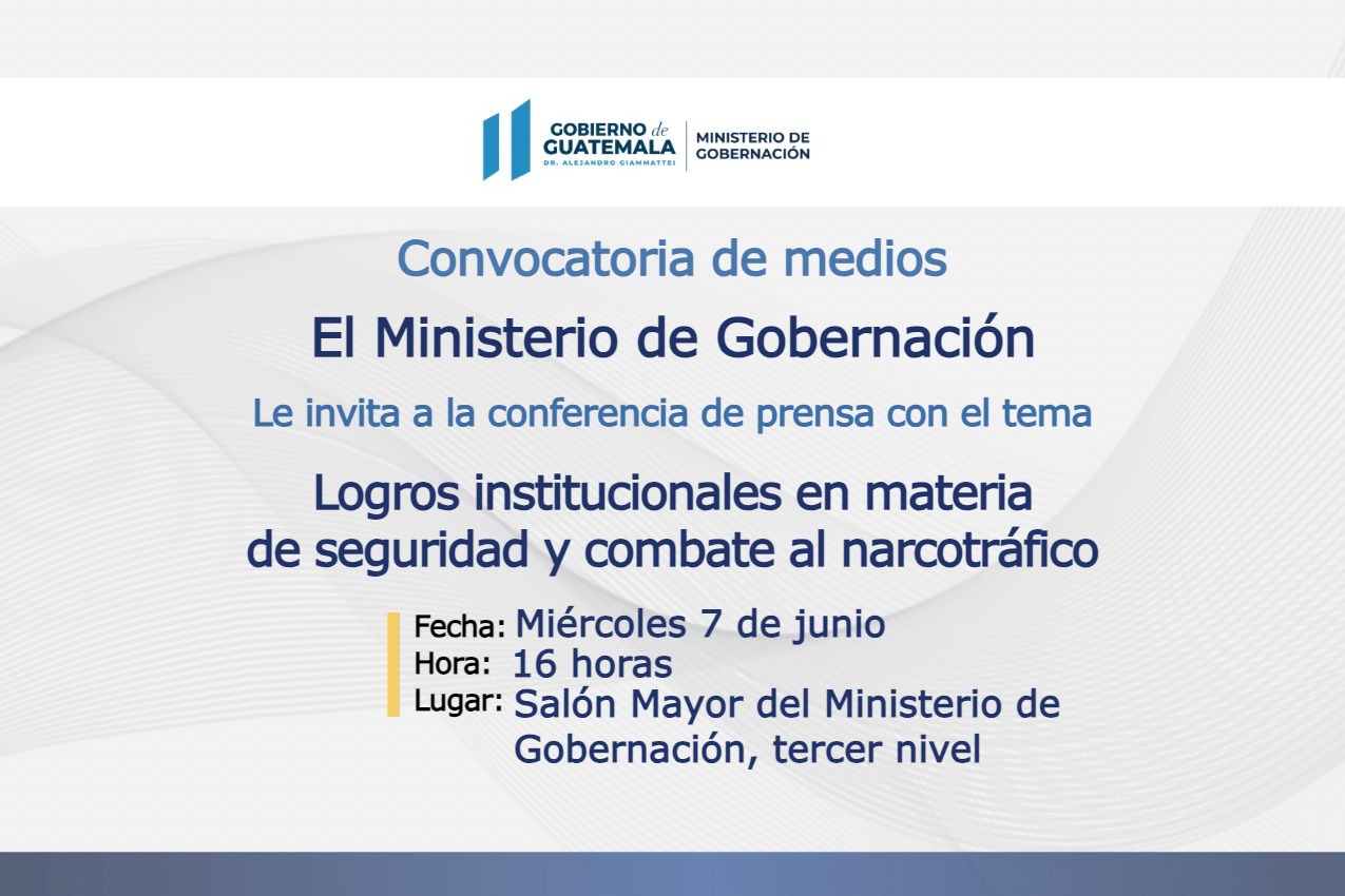 Logros institucionales en materia de seguridad y combate al narcotráfico Fecha: Miércoles 7 de junio Hora: 16 horas Lugar: Salón Mayor del Ministerio de Gobernación, tercer nivel