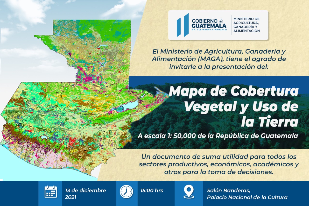 El Ministerio de Agricultura, Ganadería y Alimentación invita a los estimados periodistas a la presentación del Mapa de Cobertura Vegetal y Uso de la Tierra, a escala 1:50,000 de la República de Guatemala.