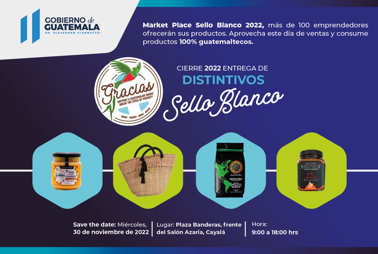El Ministerio de Economía invita a medios de comunicación y público en general al Market Place de Sello Blanco 2022, donde 100 emprendedores ofrecerán sus productos. Aprovecha este día de ventas y consume productos 100 % guatemaltecos.