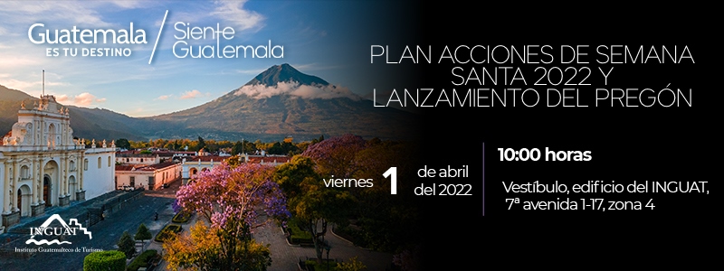 El Instituto Guatemalteco de Turismo -INGUAT- tiene el gusto de invitar a los medios de comunicación a la presentación del “Plan acciones de Semana Santa 2022 y lanzamiento del Pregón”.
