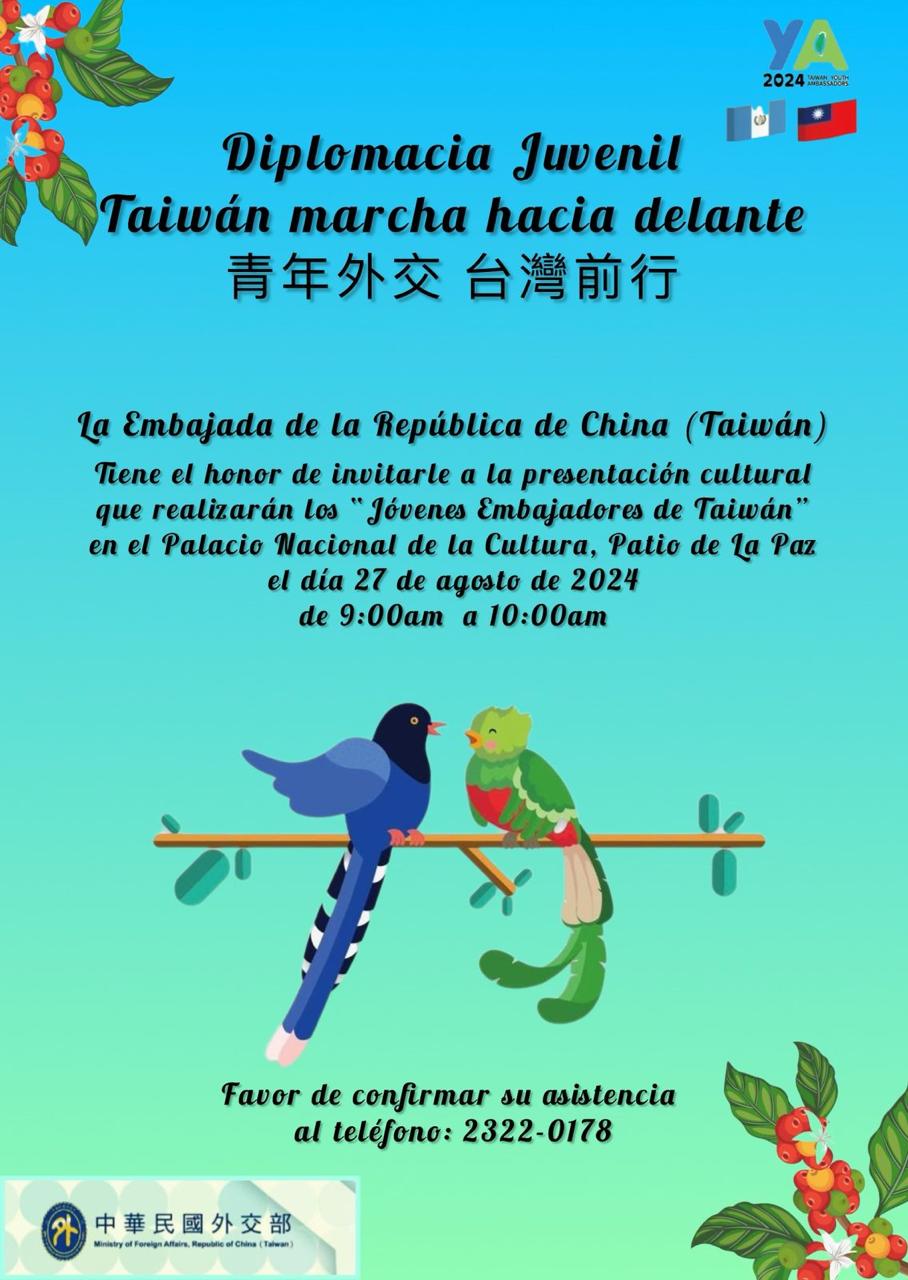 La Embajada de la República de China (Taiwán) invita a la presentación cultural de Jóvenes Embajadores de Taiwán
