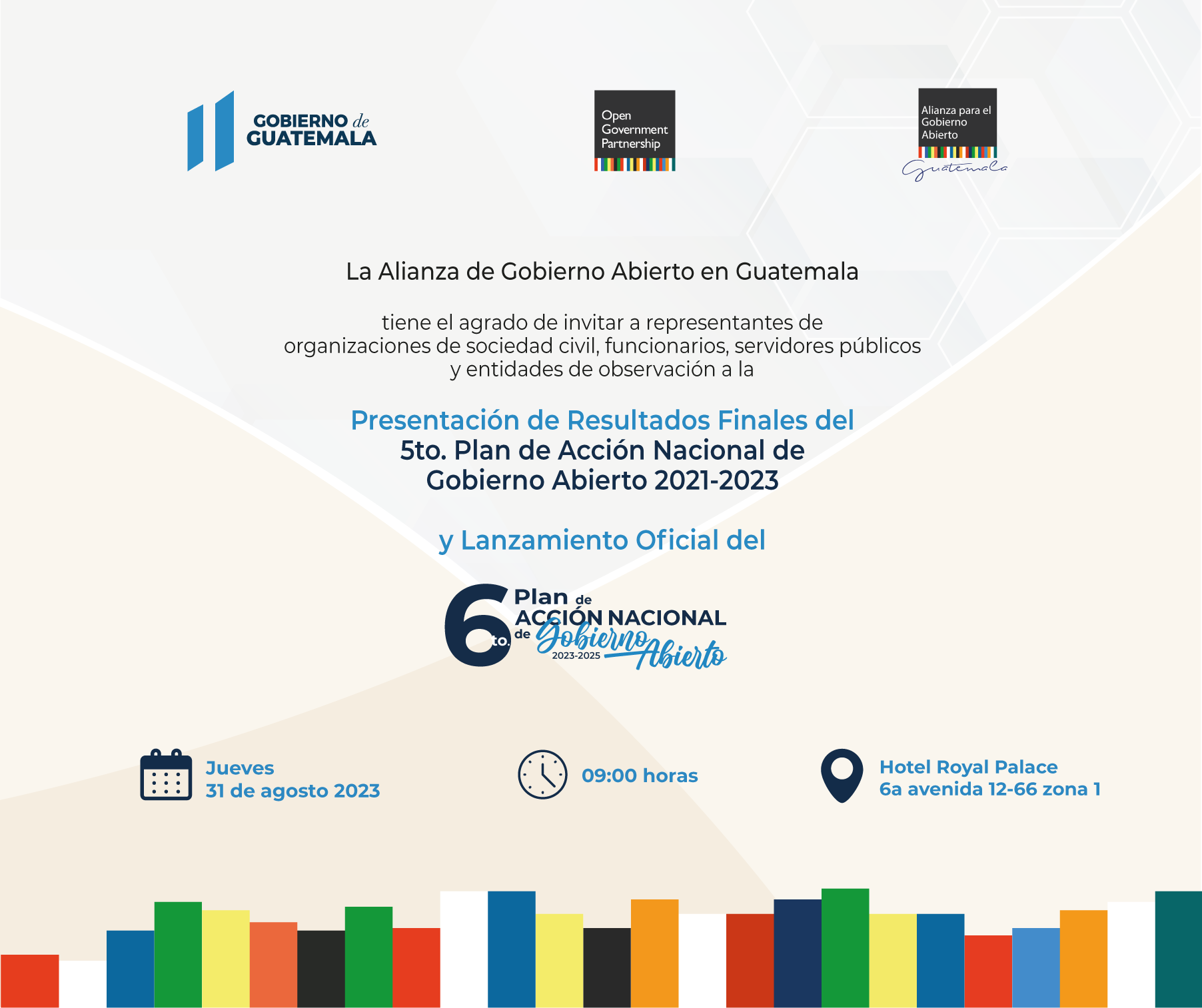 - Actividad: Presentación de Resultados Finales del 5to. Plan de Acción Nacional de Gobierno Abierto Gobierno Abierto 2021-2023 y Lanzamiento Oficial del 6to. Plan de Acción Nacional de Gobierno Abierto 2023-2025