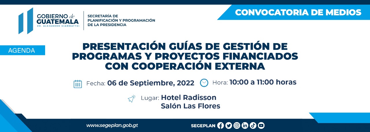 La presentación de las guías de gestión de programas y proyectos financiados con cooperación externa, tienen como objetivo resaltar la importancia del cumplimiento de requisitos para las opiniones técnicas, procesos generales para la gestión de recursos de cooperación externa y dar a conocer la guía orientadora de los programas y proyectos de Cooperación Internacional