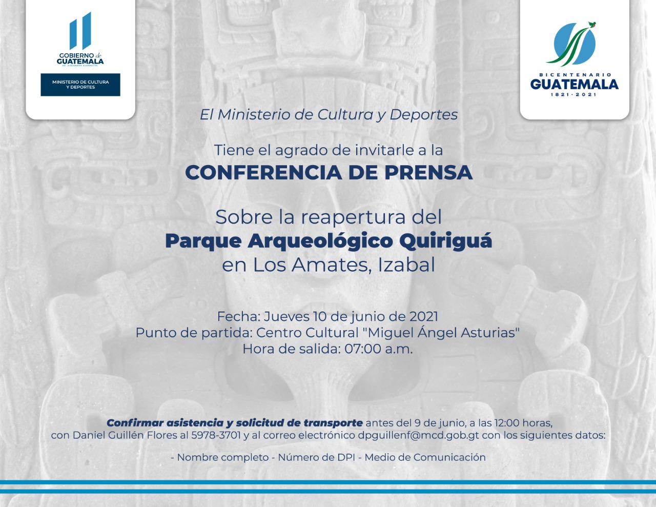 Este jueves 10 de junio se realizará la reapertura del Parque Arqueológico Quiriguá.