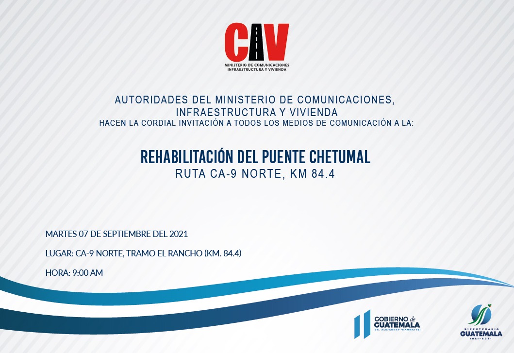 Rehabilitación del puente Chetumal: Concluyen trabajos de rerovación y ampliación del puente Chetumal Ruta CA-9 norte, Km 84.4, tramo el Racho, carretera al Atlántico.