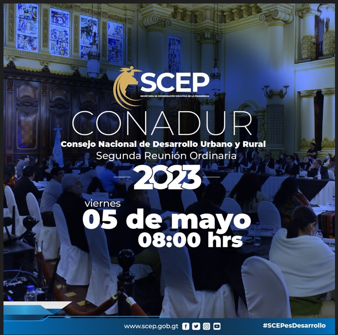 La #SCEP coordina la segunda reunión ordinaria del Consejo Nacional de Desarrollo Urbano y Rural #Conadur que se llevará a cabo el viernes 5 de mayo de 2023, a las 08:00 horas, en el Salón Banderas, del Palacio Nacional de la Cultura.