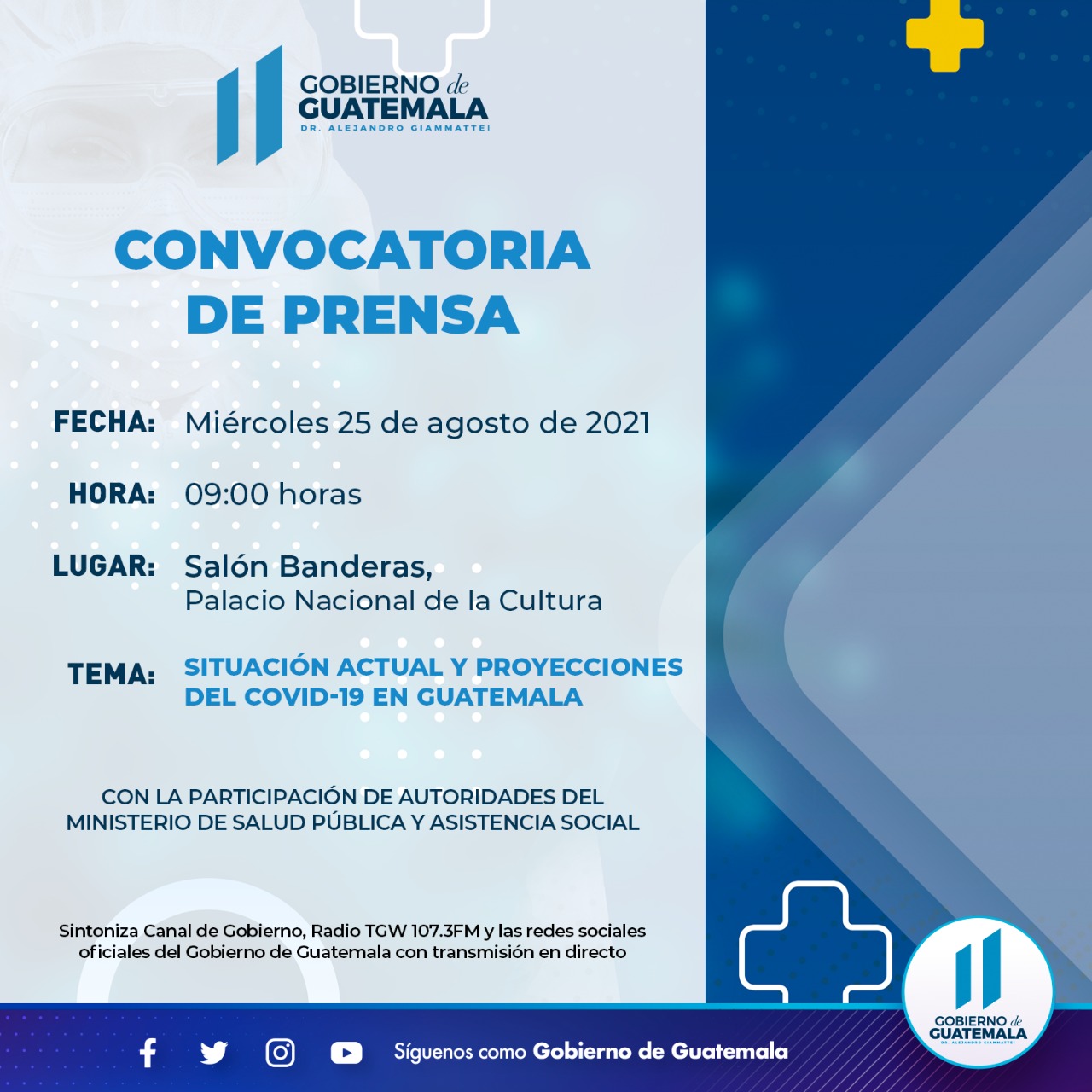 Autoridades del Ministerio de Salud Pública y Asistencia Social hablarán sobre la situación actual y proyecciones del Covid-19 en Guatemala.