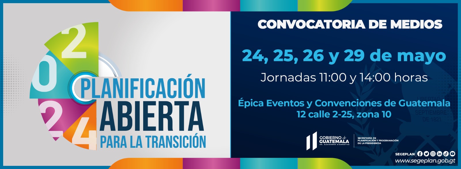 Los Talleres de Planificación Abierta para la Transición 2024, tiene como objetivo fortalecer las capacidades del proceso de planificación para la transición, abordando los temas de la evaluación del cumplimiento de la Política General de Gobierno -PGG-, evaluación sobre avance de Prioridades Nacionales de Desarrollo -PND, verificación de la calidad de la planificación, producción institucional de mayor relevancia que se implementaron y los principales logros alcanzados por la institución en el marco del Informe General de la República.