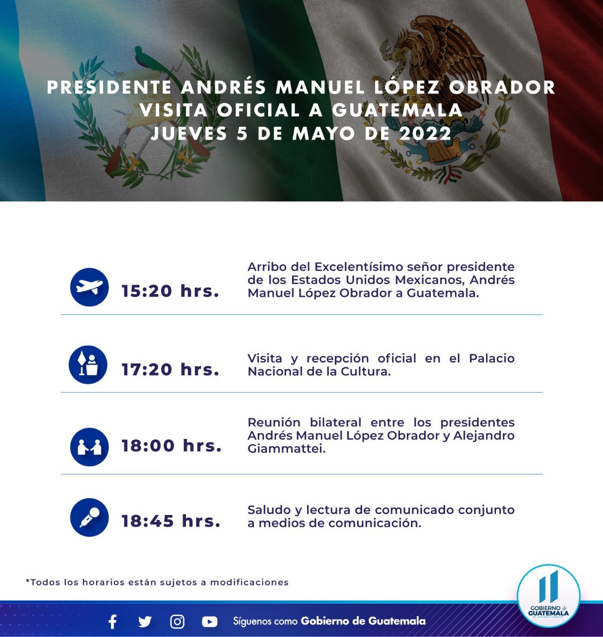 El presidente de México, Andrés Manuel López Obrador, lleva a cabo una visita oficial a la República de Guatemala.