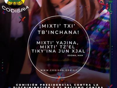 Campaña en distintos idiomas de Guatemala, que tiene como objetivo, hacer conciencia en la población guatemalteca para unirse a erradicar la discriminación racial.