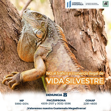 El CONAP insta a la población guatemalteca a denunciar ante las autoridades competentes el tráfico ilegal de Vida Silvestre.