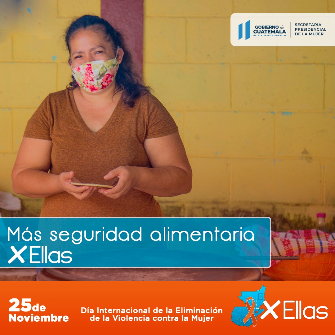 En ese sentido surge la campaña denominada “Guate X Ellas” la cual enmarca la seguridad alimentaria, educación, justicia, salud, respeto, solidaridad, equidad, seguridad, oportunidad, participación, empoderamiento, educación y derechos humanos de las mujeres.