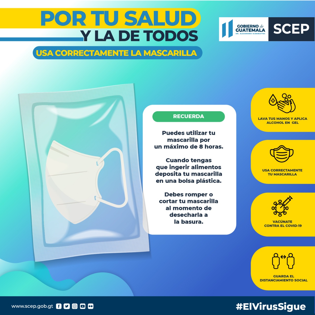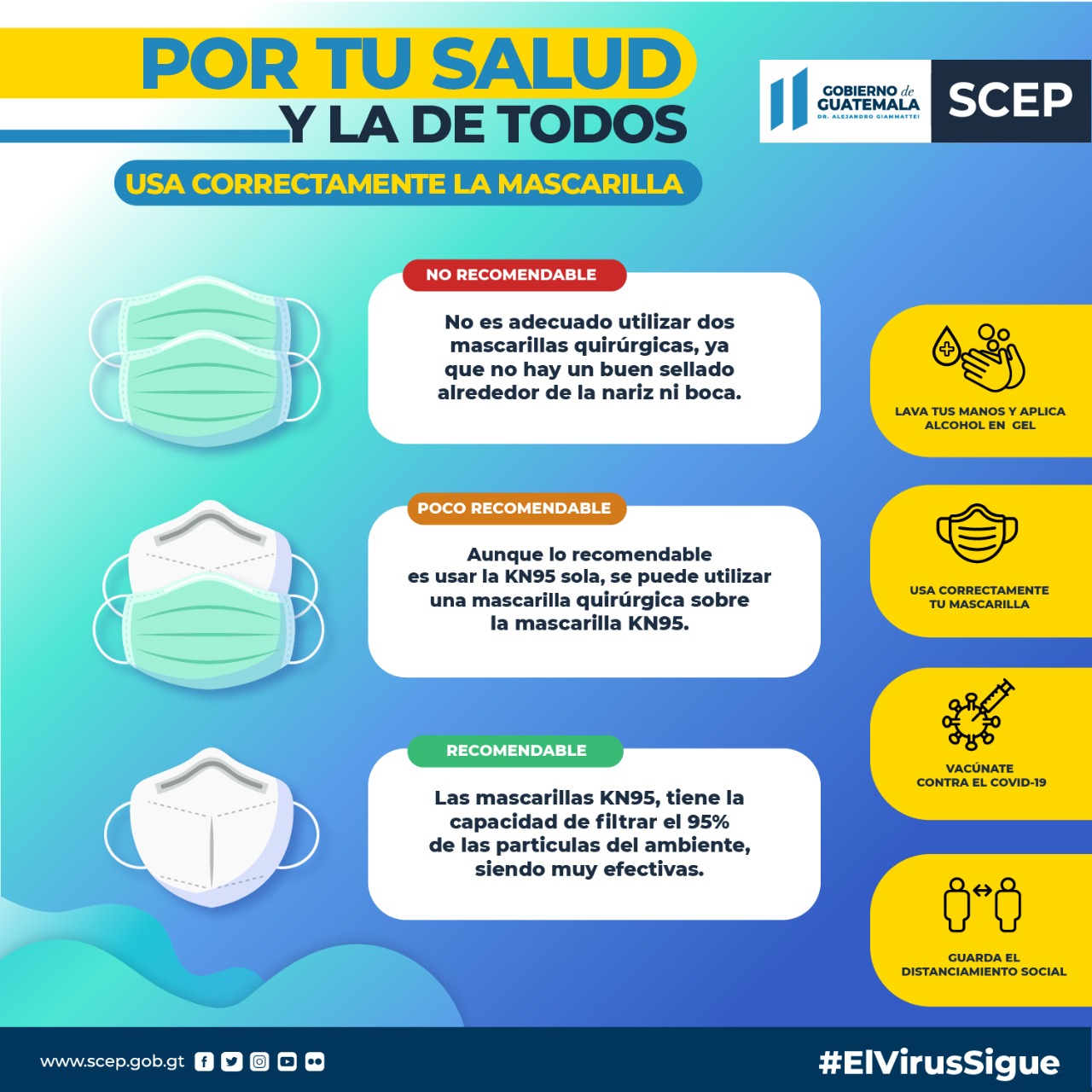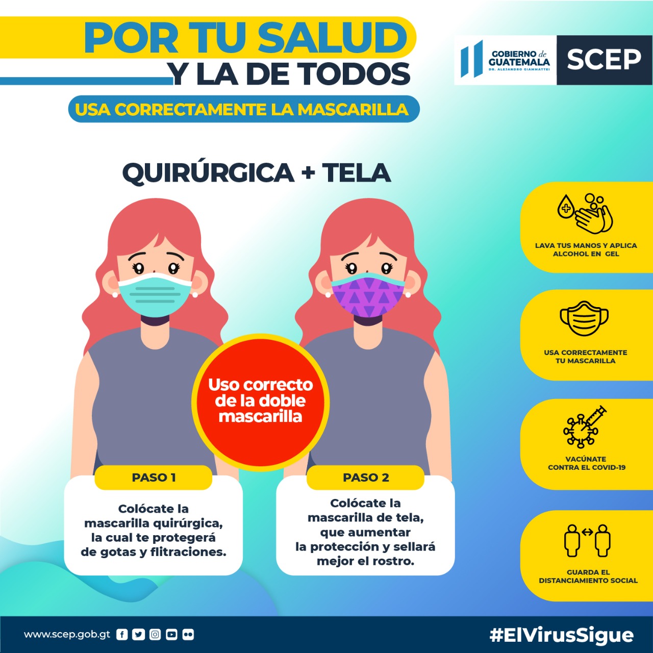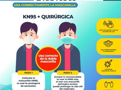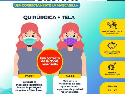 Usar correctamente la mascarilla previene el contagio de COVID-19, conoce cómo debes colocártelas. #JuntosSaldremosAdelante