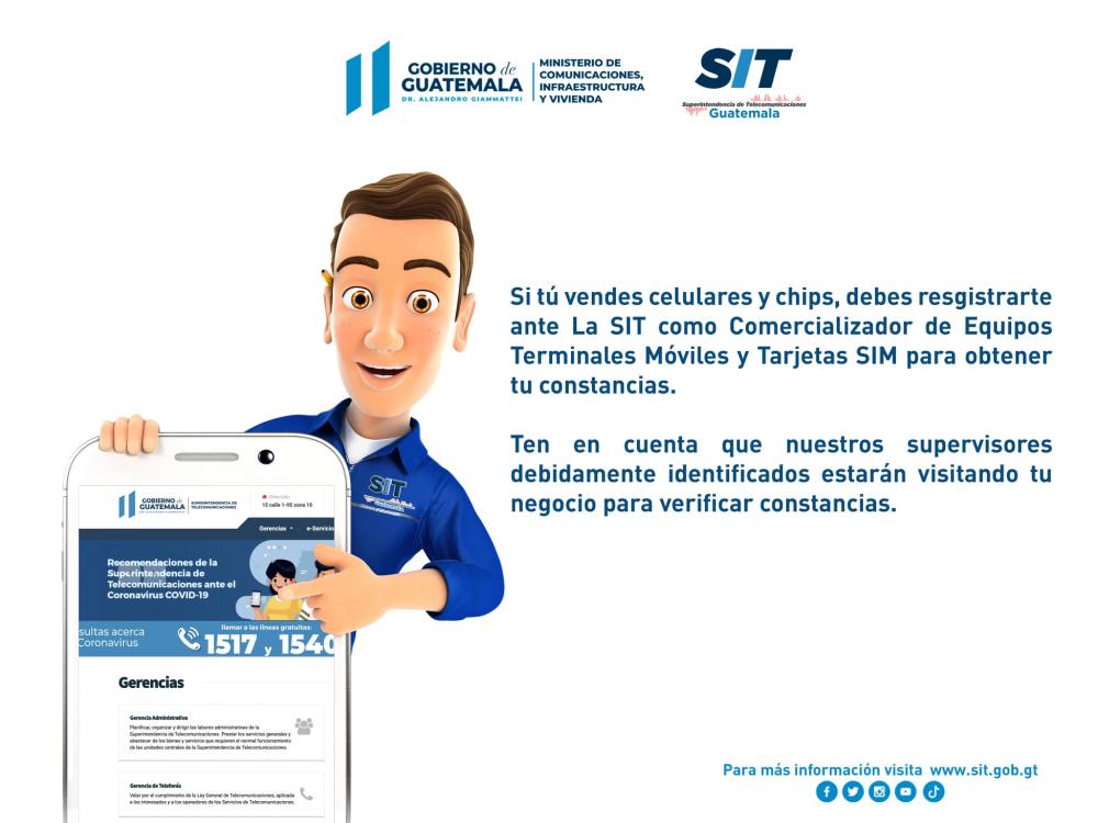 Si usted vende celulares y chips, debe registrarte ante La Superintendencia de Telecomunicaciones, SIT del CIV- Ministerio de Comunicaciones como Comercializador de Equipos Terminales Móviles y Tarjetas SIM para obtener tu constancias.