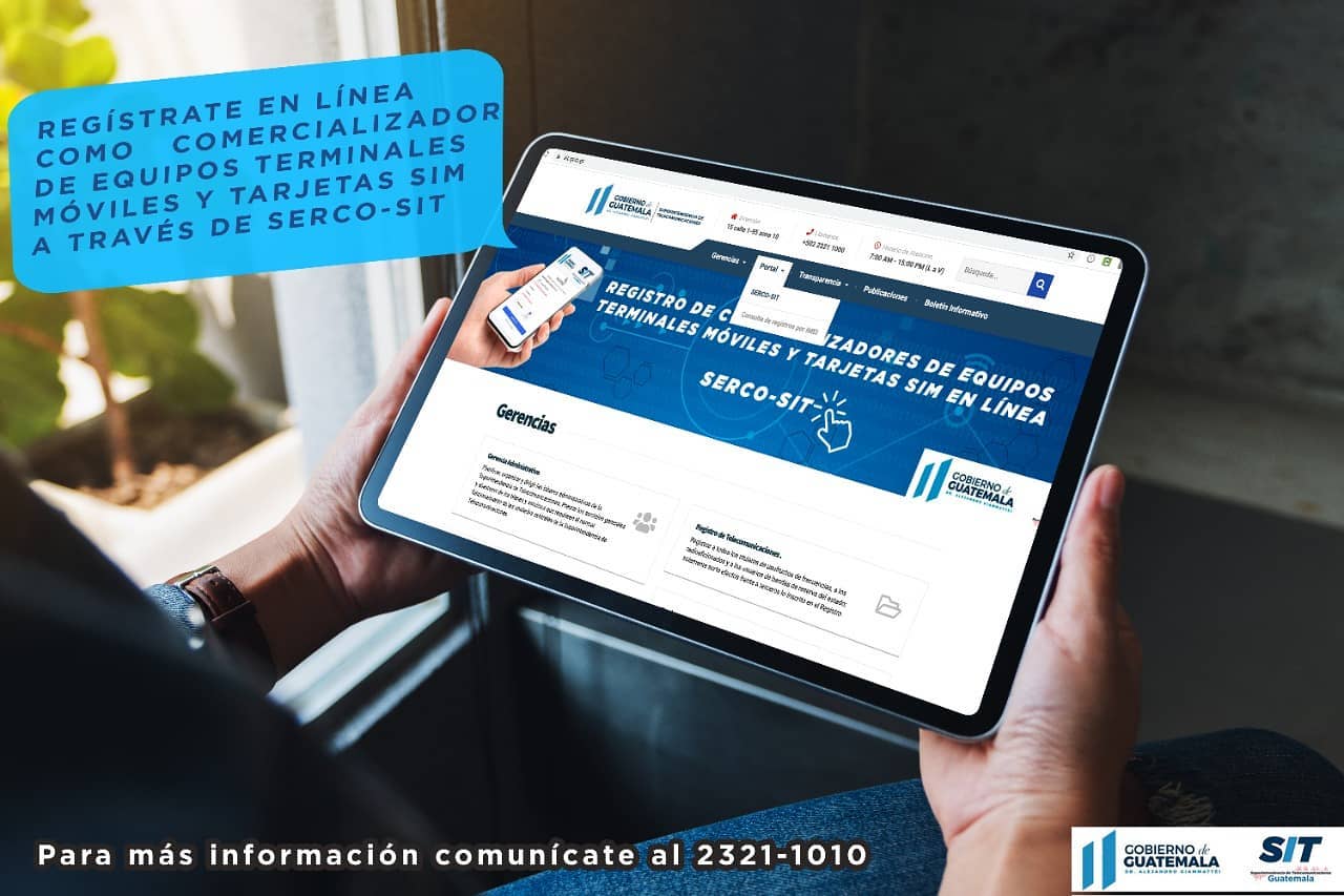 Regístrate en línea como Comercializador de Equipos Terminales móviles y Tarjeta SIM a través de SERCO-SIT, ingresando a www.sit.gob.gt en la pestaña Portal.