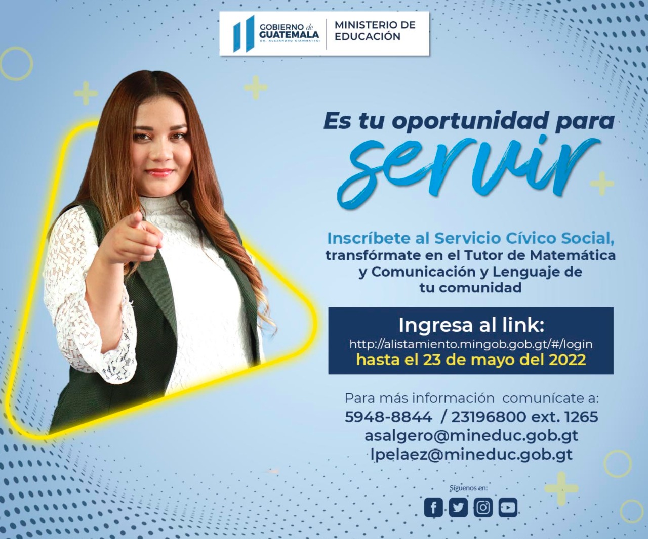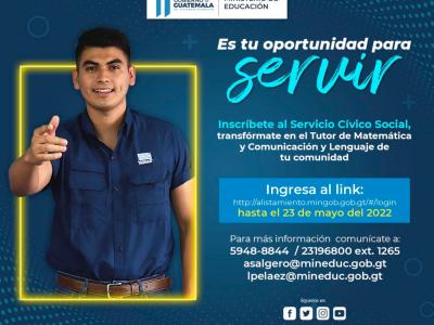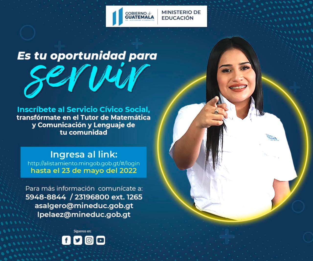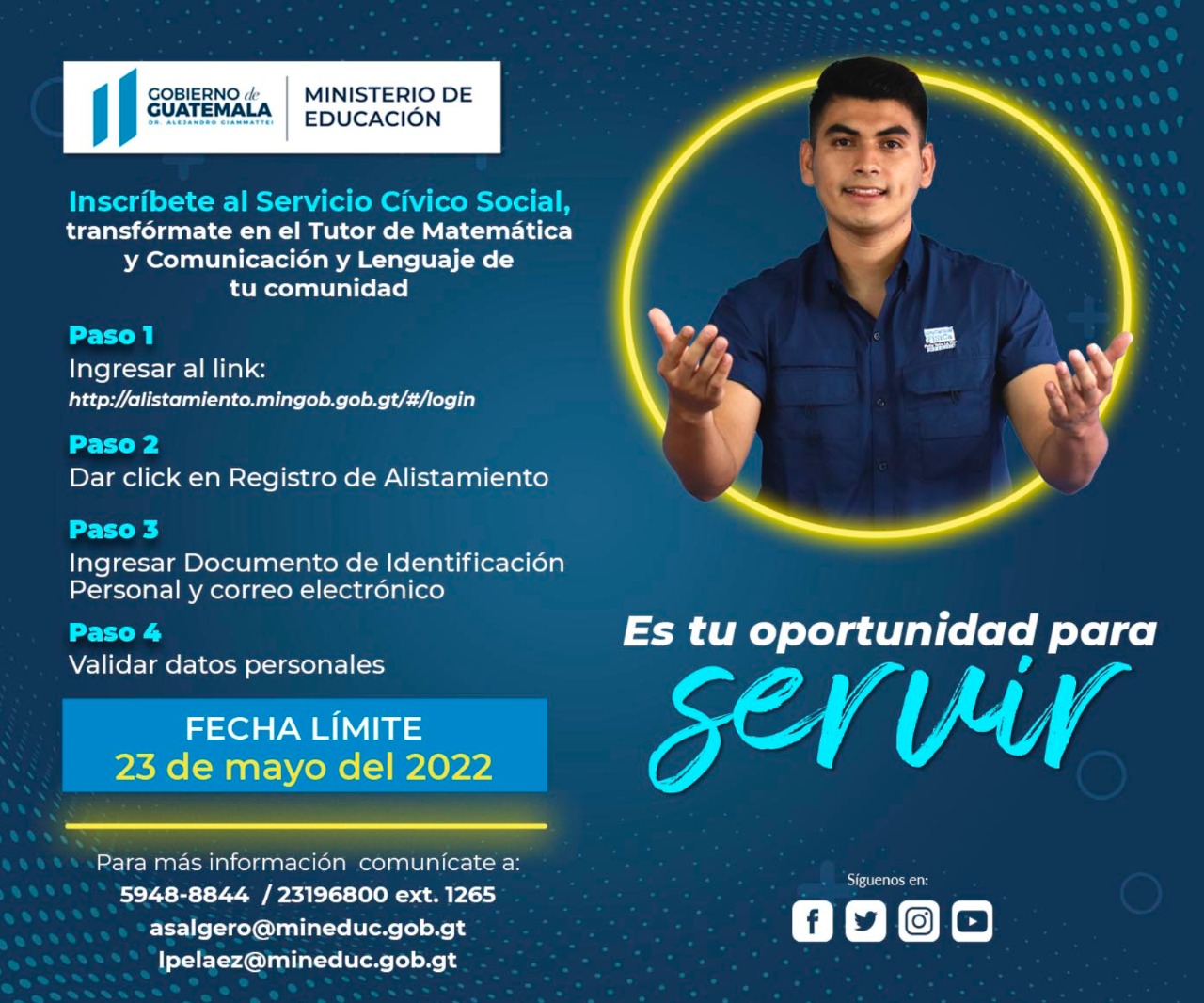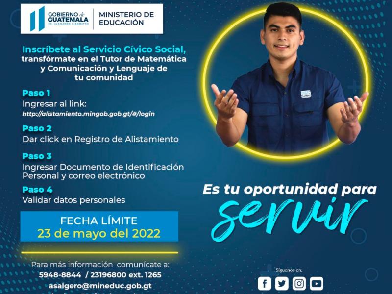 Inscríbete al Servicio Cívico Social en alistamiento.mingob.gob.gt
