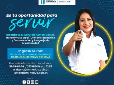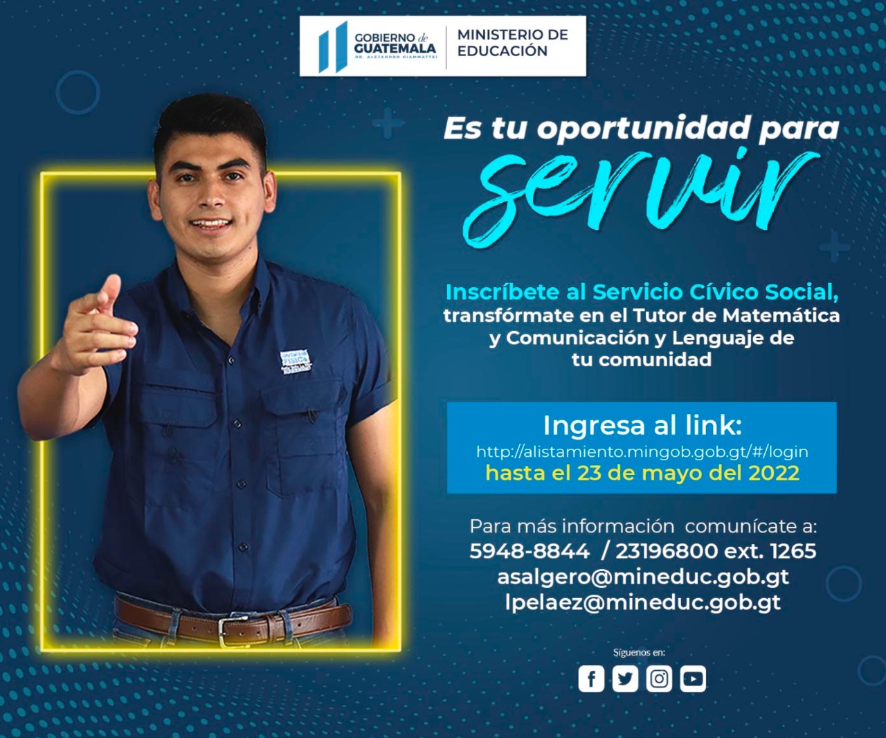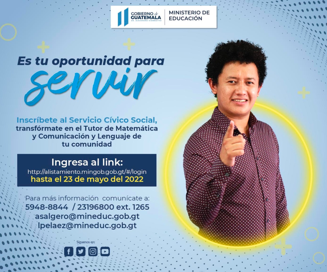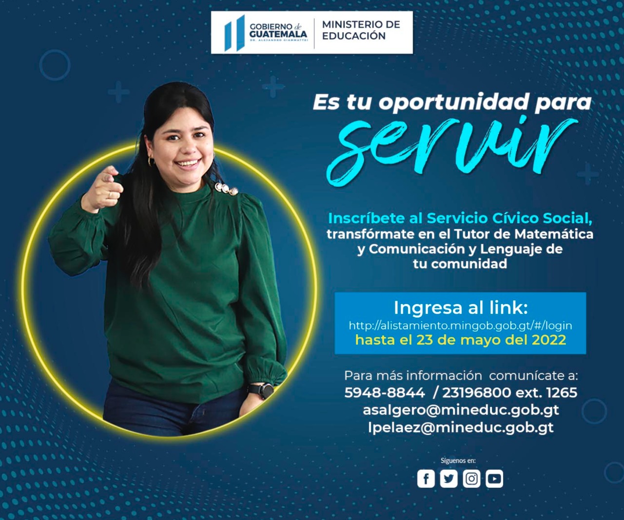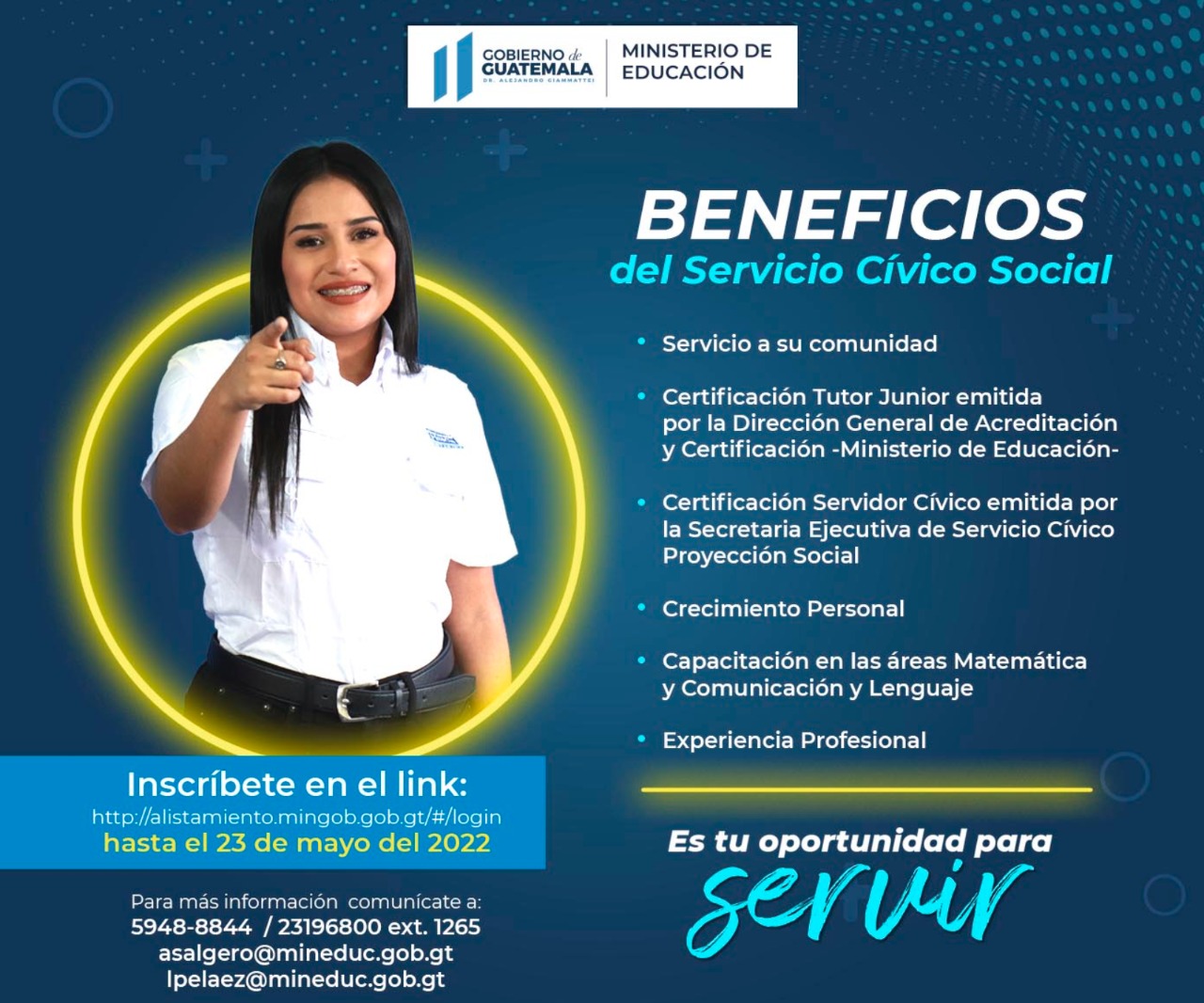 Inscríbete al Servicio Cívico Social en alistamiento.mingob.gob.gt
