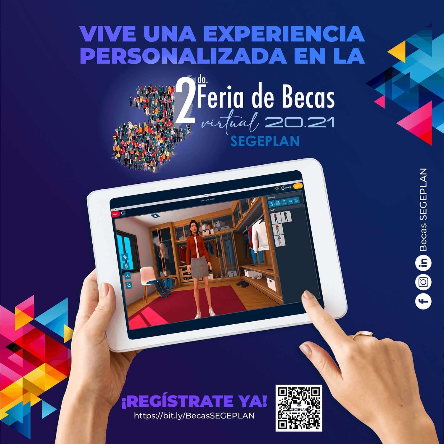 La II Feria Virtual de Becas SEGEPLAN se realizará en un entorno completamente virtual, por medio de una plataforma que permitirá el acceso a un mundo digital 3D con avatares personalizados. Habrá más de 30 stands de los principales oferentes de oportunidades de becas de maestría, doctorado, licenciatura, cursos cortos, entre otros.